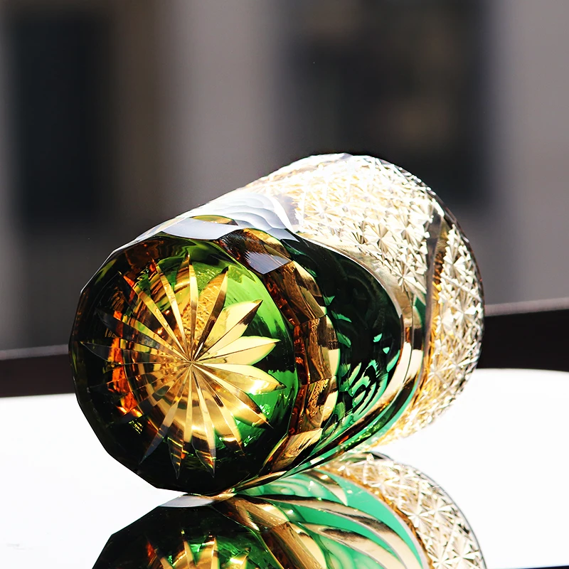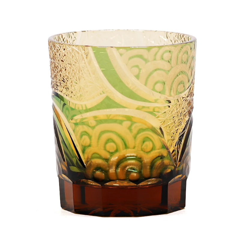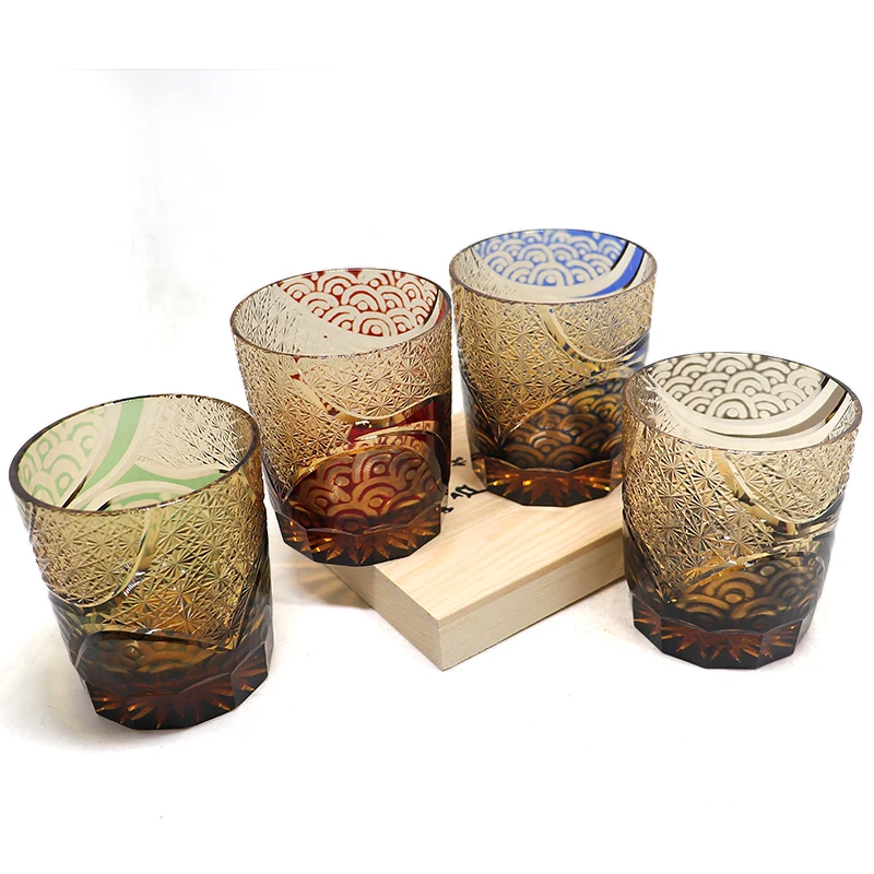 240 ml Cylinder Hand made Multi-Colored Japanese Style Old Fashioned Glass Edo Kiriko Whiskey Tumblers Engraved With Gift Box
